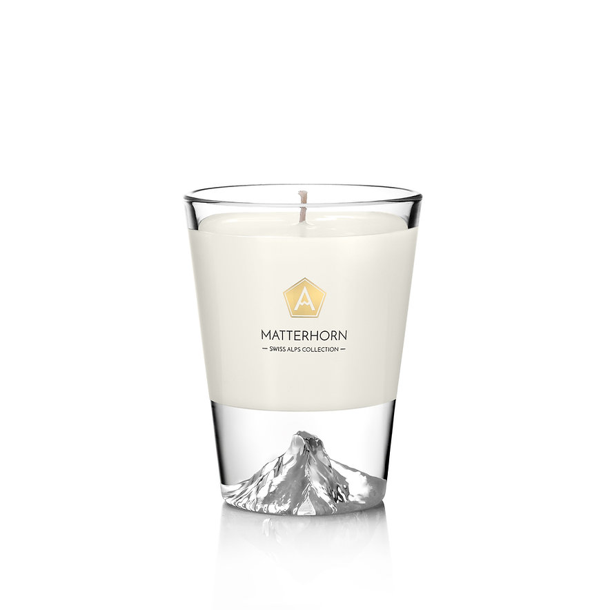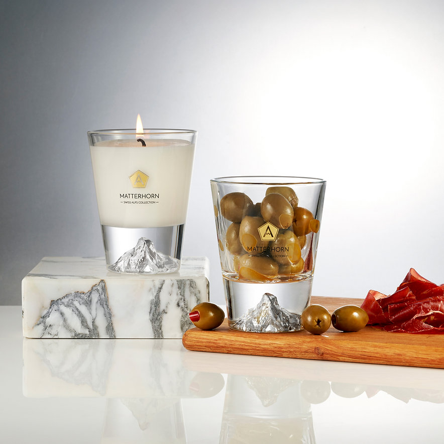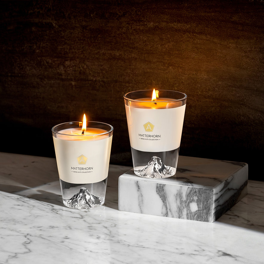Unit price perCandle with a unique design, made of 100% natural vegetable wax (soy and coconut), featuring a realistic 3D representation of the Matterhorn. As it burns, the light illuminates the mountain sculpted at the base of the glass, creating a visual experience.