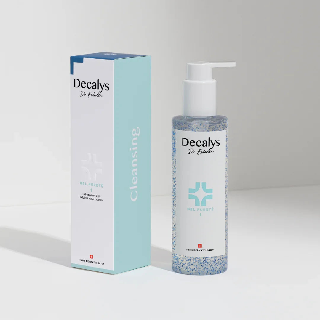 A daily routine to follow: use in the evening for oily skin, for combination skin alternate every second day with Gel douceur. Dispense 1 to 2 pumps of Gel pureté into your hand, lather with lukewarm water and apply on your face, avoiding the eye area. Then massage your skin with small circular movements for about half a minute. Finally rinse off thoroughly. Carefully dry the skin, patting it with a soft, clean towel. To conclude, apply your DECALYS products according to your personal routine.