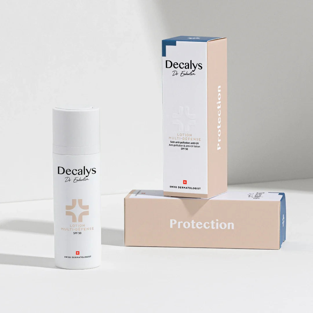 Dispense three to four pumps of DECALYS Lotion multi-défense onto the palm of your hand and apply with your fingertips to face, neck and décolleté. Use after moisturizer and serum.