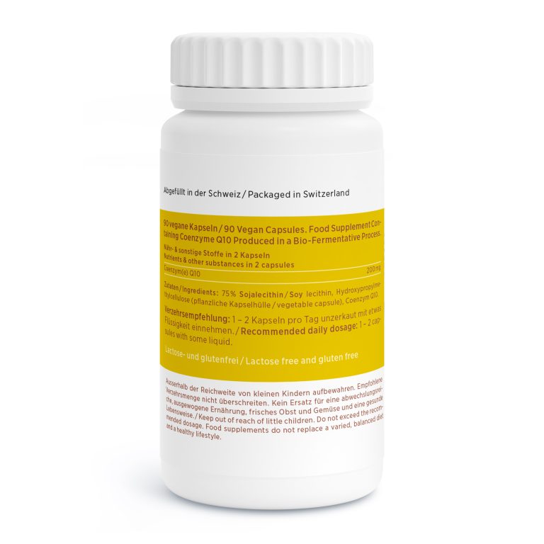 Q10 Vida contains only the original, purely biofermentatively produced coenzyme Q10 from Kaneka and soya lecithin. Q10 Vida does not contain a single additive or excipient. The capsule shell is made of HPMC and is therefore entirely of plant origin.
