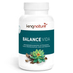 Balance Vida contains 120 capsules each with 400 mg L-phenylalanine, 100 mg L-tyrosine, 30 mg rose root, 30 µg selenium and 6 µg vitamin B12. Net content 76 g.