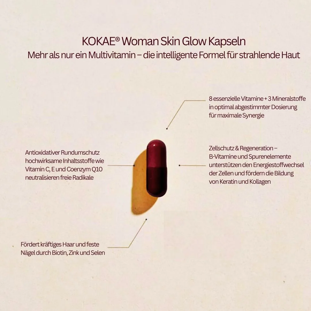 Every day, your skin is your shield, your expression, and your most beautiful accessory. Stress, environmental factors, and the passage of time can leave their marks. That’s where the KOKAE® Woman Skin Glow Set comes in: a blend of natural and scientifically validated ingredients designed for visible results.