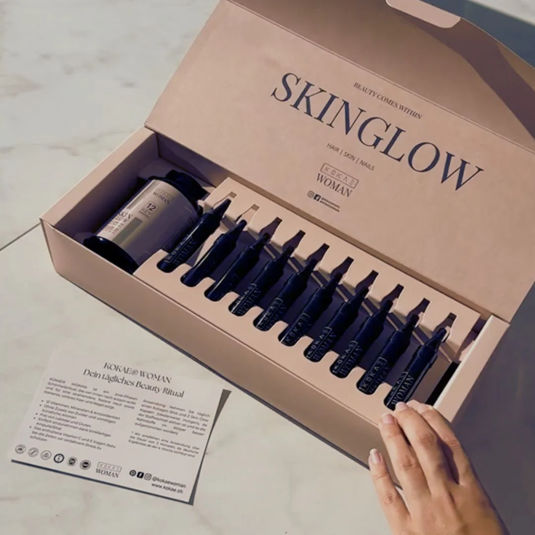 Give your skin a daily boost with the perfect combination of science and nature. The KOKAE® Woman Collagen Skin Glow Set combines liquid collagen shots with high-potency capsules to hydrate your skin, improve elasticity, and promote a radiant glow – for a visibly fresh and healthy appearance.