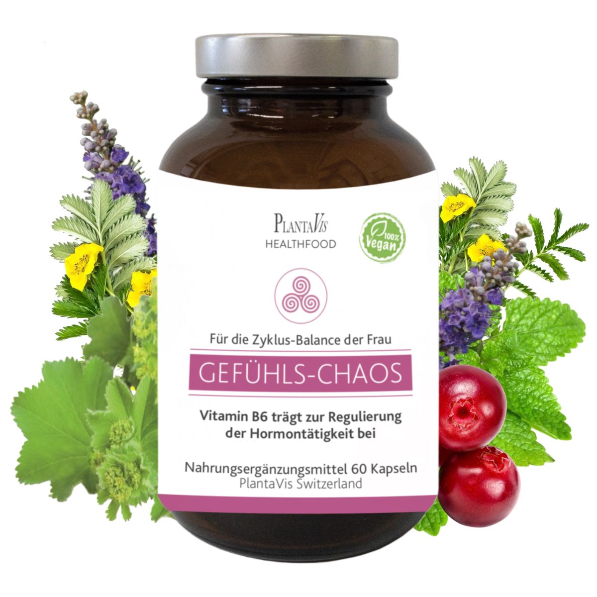 Unit price perDietary supplement with lemon balm extract, silverweed, camu camu extract, magnesium oxide, lady’s mantle extract, vervain extract, chaste tree extract, and vitamin B6 – a high-quality product from PlantaVis